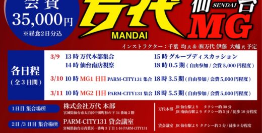 ☆3日で変わる!経営観☆☆初日9日(月)万代ベンチマークツアーだけの…
